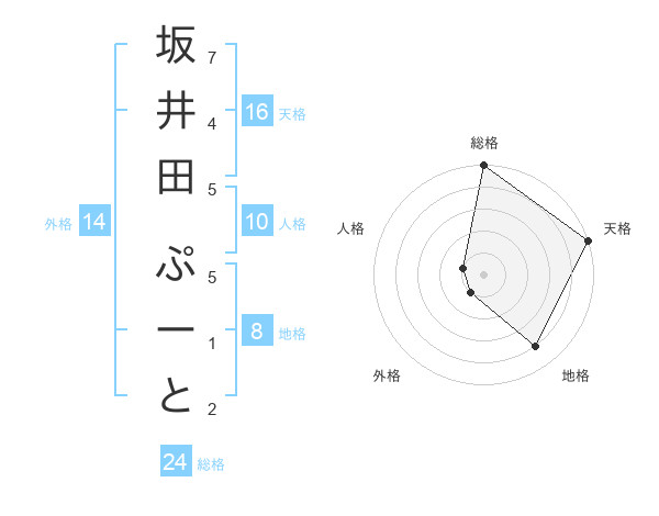 坂井田 ぷーとさんの天格は16画の5点!