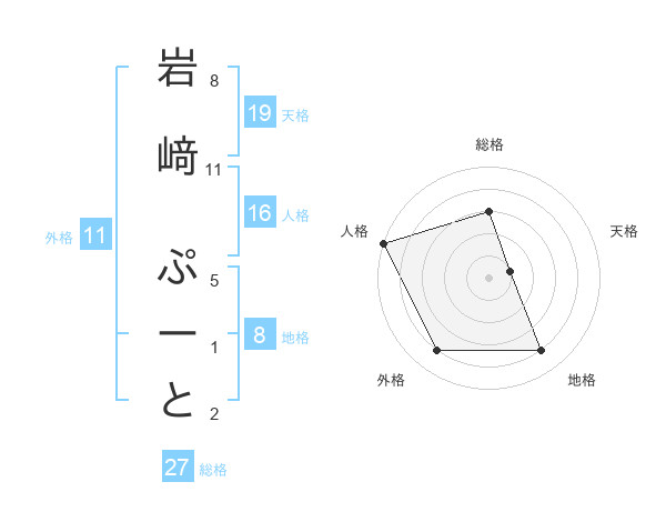 岩﨑 ぷーとさんを姓名の画数から五運を鑑定