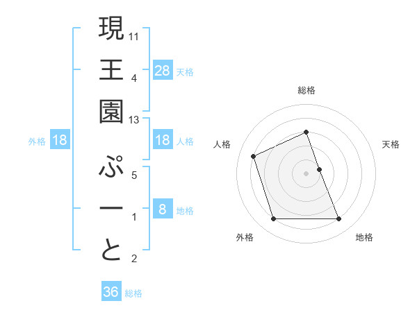 現王園 ぷーとさんを姓名の画数から五運を鑑定