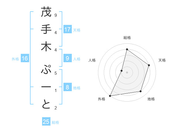 茂手木 ぷーとさんの外格は16画の5点!