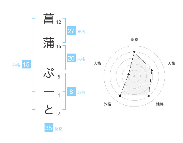 菖蒲 ぷーとさんの外格は15画の4点!
