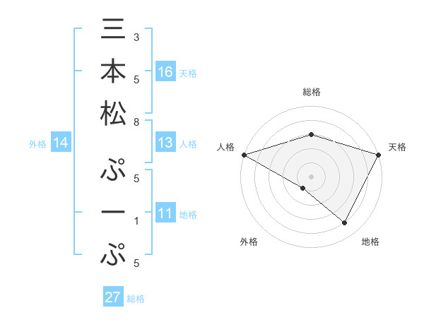 三本松 ぷーぷさんを姓名の画数から五運を鑑定