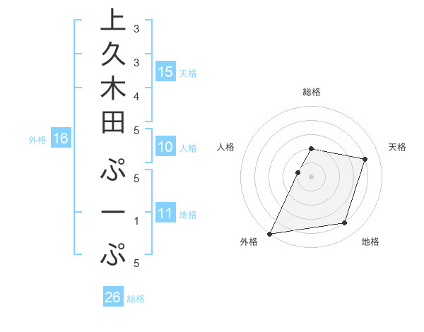 上久木田 ぷーぷさんを姓名の画数から五運を鑑定