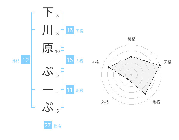 下川原 ぷーぷさんを姓名の画数から五運を鑑定