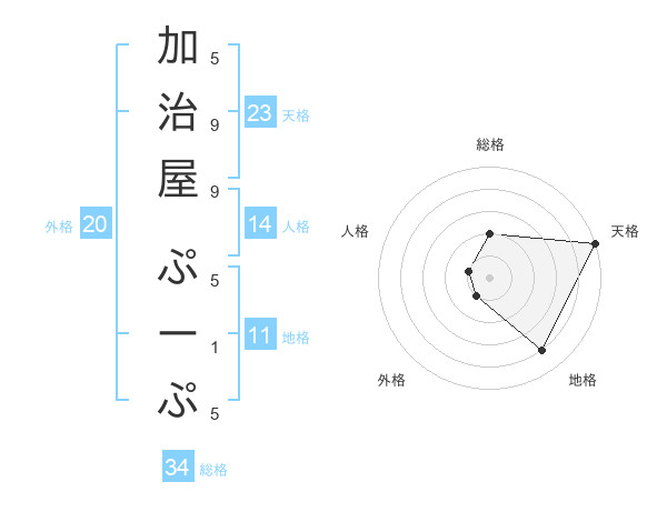 加治屋 ぷーぷさんの天格は23画の5点