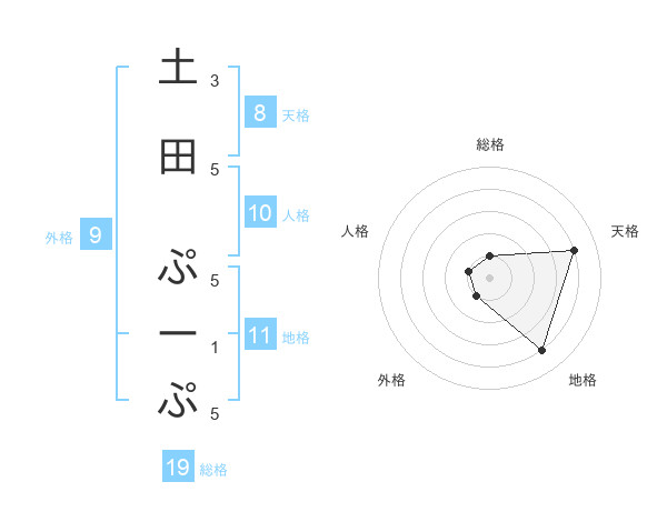 土田 ぷーぷさんの天格は8画の4点!