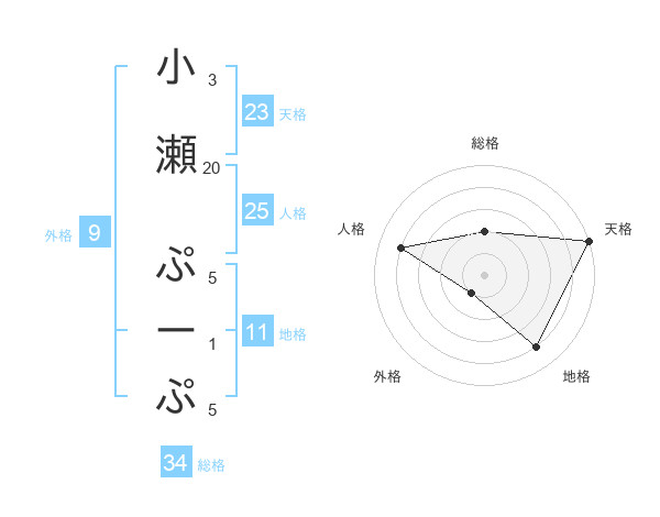 小瀬 ぷーぷさんの天格は23画の5点!