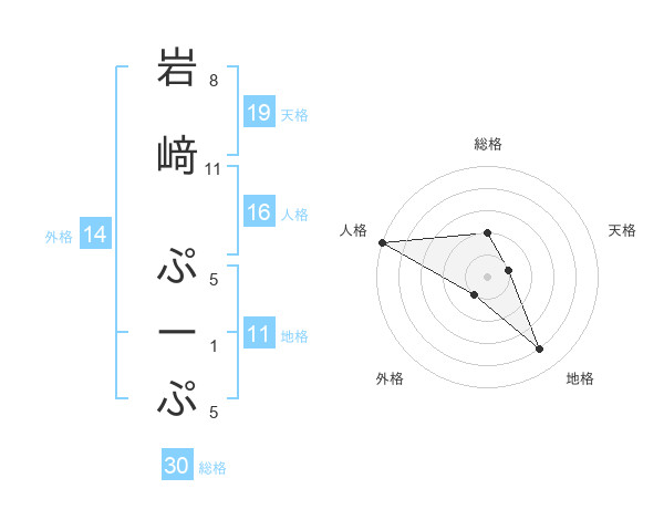 岩﨑 ぷーぷさんの地格は11画の4点!