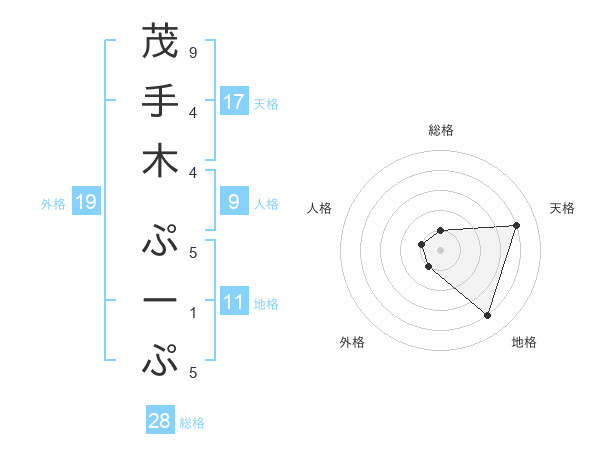 茂手木 ぷーぷさんを姓名の画数から五運を鑑定