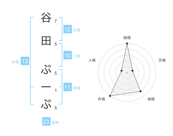 谷田 ぷーぷさんを姓名の画数から五運を鑑定