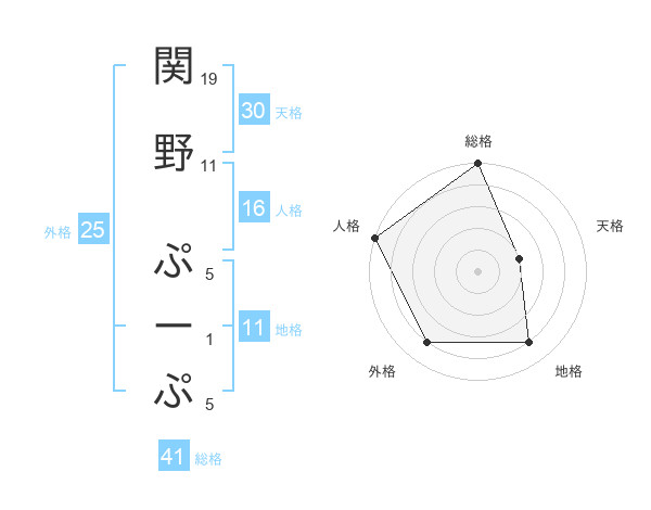 関野 ぷーぷさんを姓名の画数から五運を鑑定