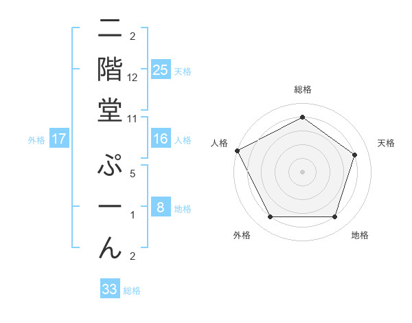 二階堂 ぷーんさんを姓名の画数から五運を鑑定