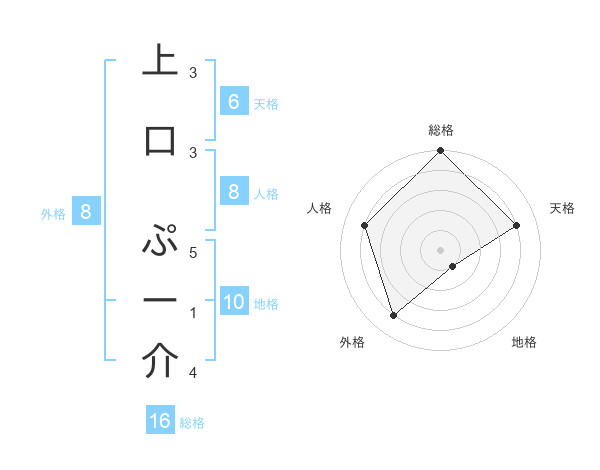 上口 ぷー介さんを姓名の画数から五運を鑑定