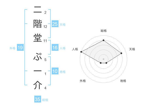 二階堂 ぷー介さんを姓名の画数から五運を鑑定