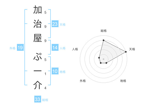加治屋 ぷー介さんを姓名の画数から五運を鑑定