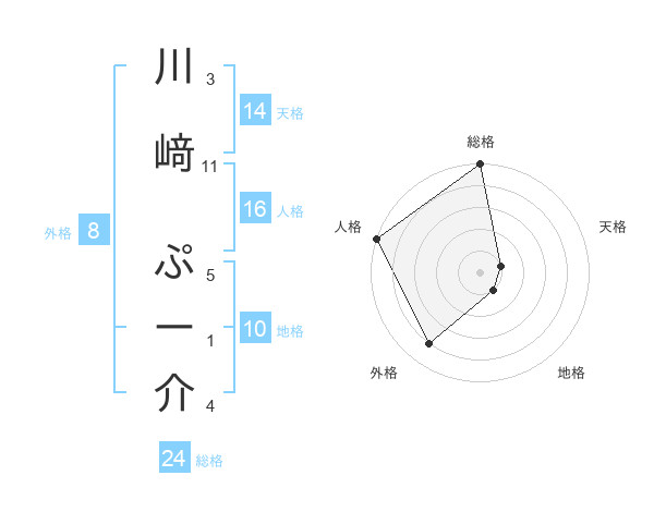 川﨑 ぷー介さんを姓名の画数から五運を鑑定