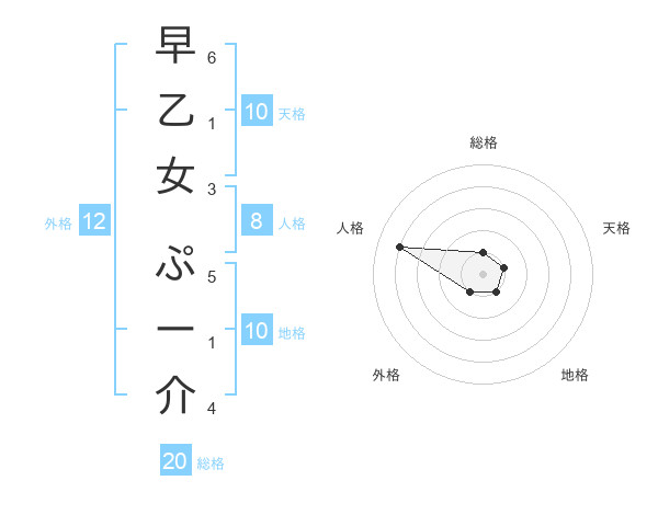 早乙女 ぷー介さんを姓名の画数から五運を鑑定