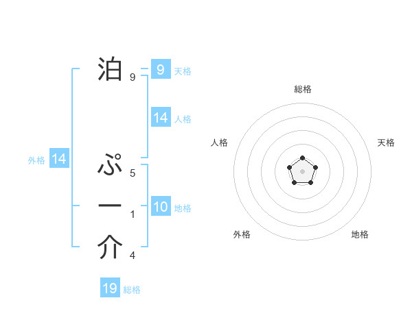 泊 ぷー介さんを姓名の画数から五運を鑑定