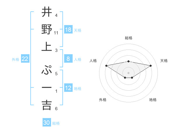 井野上 ぷー吉さんを姓名の画数から五運を鑑定