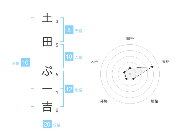 土田 ぷー吉さんを姓名の画数から五運を鑑定