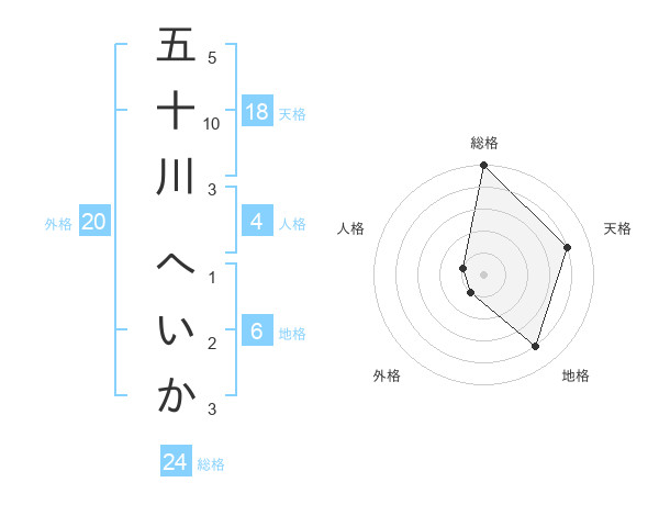 五十川 へいかさんを姓名の画数から五運を鑑定