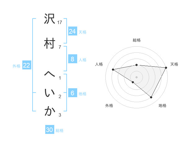 沢村 へいかさんの天格は24画の5点!