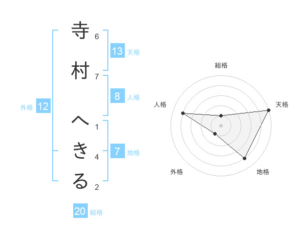 寺村 へきるさんを姓名の画数から五運を鑑定