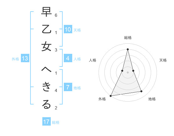 早乙女 へきるさんを姓名の画数から五運を鑑定
