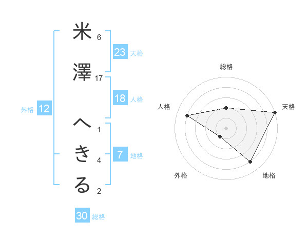 米澤 へきるさんを姓名の画数から五運を鑑定