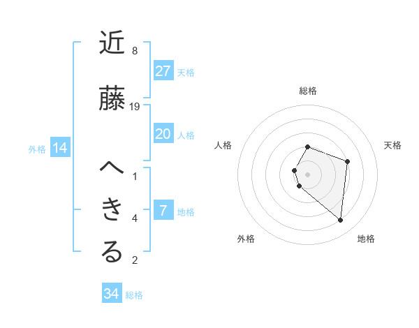 近藤 へきるさんの総格は34画の2点!