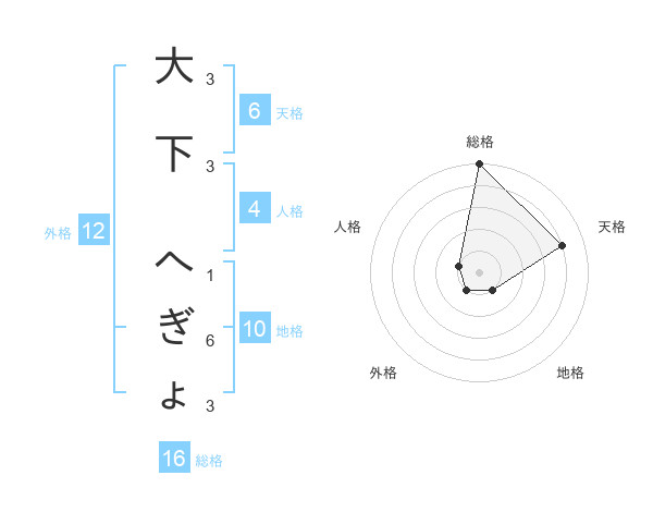 大下 へぎょさんを姓名の画数から五運を鑑定