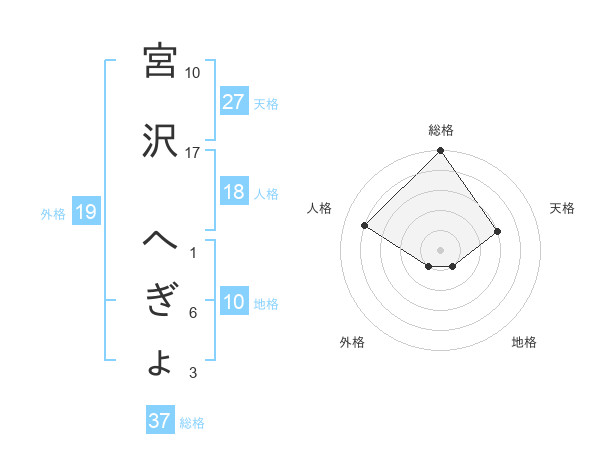 宮沢 へぎょさんを姓名の画数から五運を鑑定