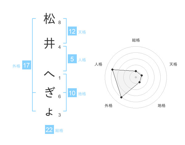 松井 へぎょさんを姓名の画数から五運を鑑定