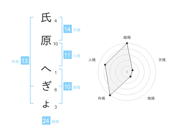 氏原 へぎょさんの外格は13画の5点!
