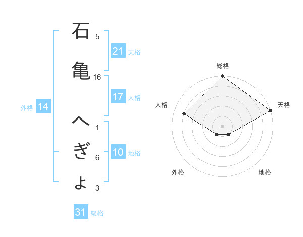 石亀 へぎょさんを姓名の画数から五運を鑑定