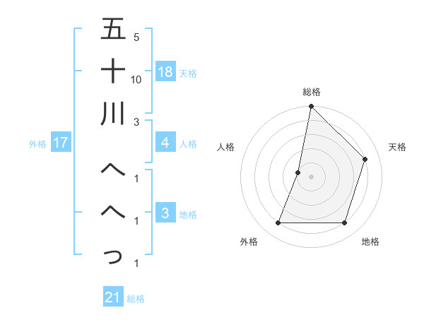五十川 へへっさんを姓名の画数から五運を鑑定