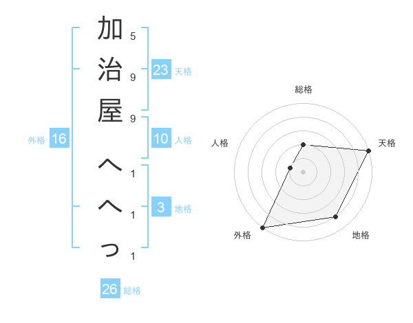 加治屋 へへっさんを姓名の画数から五運を鑑定