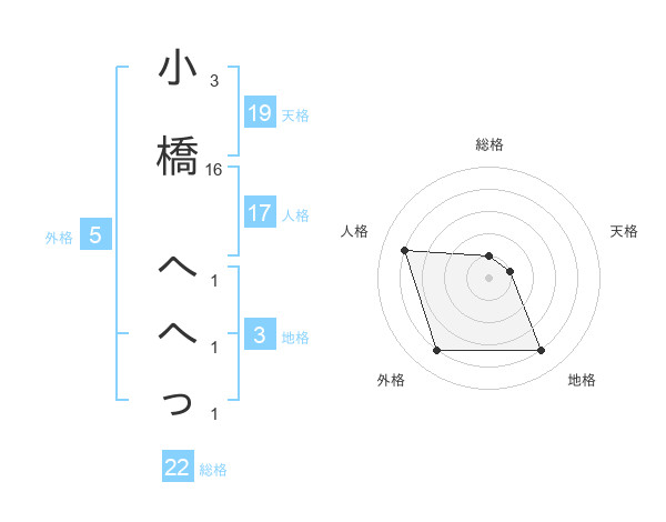 小橋 へへっさんの総格は22画の1点!