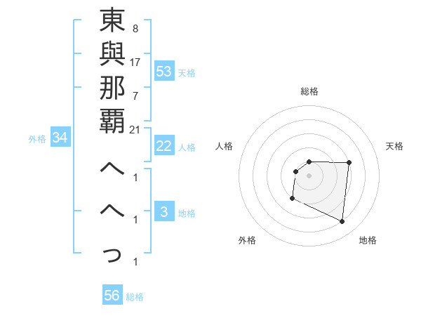 東與那覇 へへっさんの総格は56画の1点!