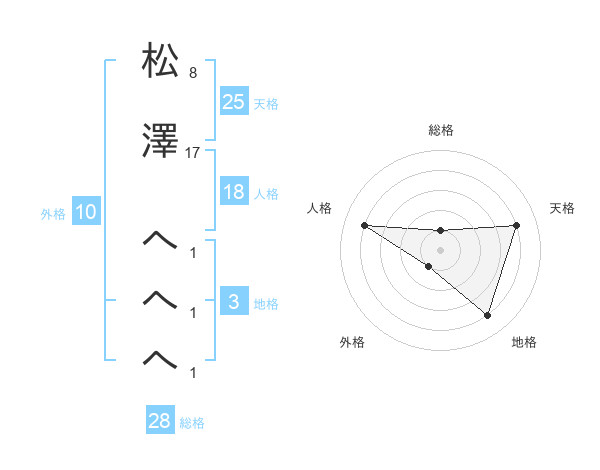 松澤 へへへさんを姓名の画数から五運を鑑定