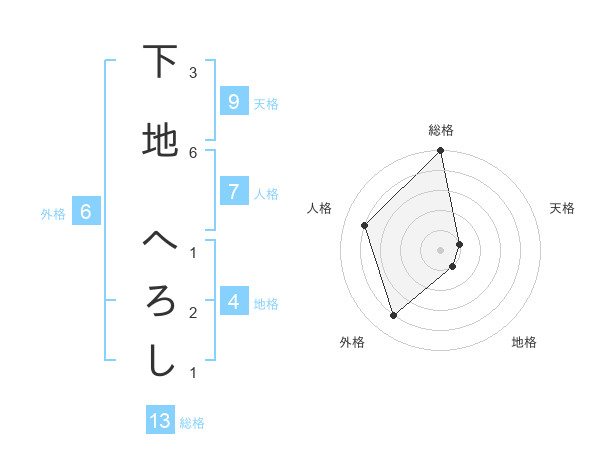 下地 へろしさんの総格は13画の5点!