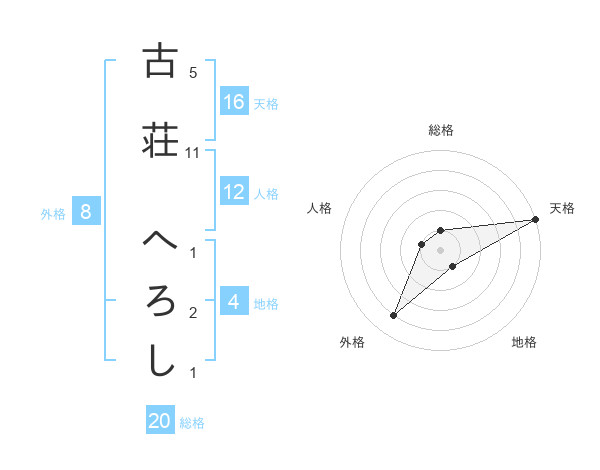 古荘 へろしさんを姓名の画数から五運を鑑定