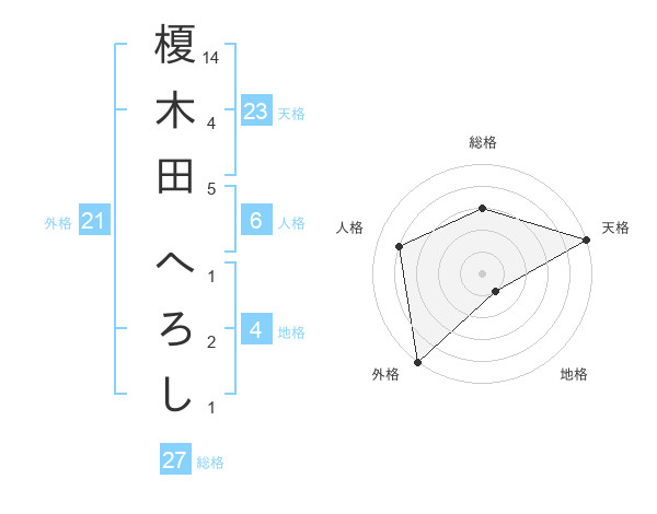 榎木田 へろしさんの天格は23画の5点!