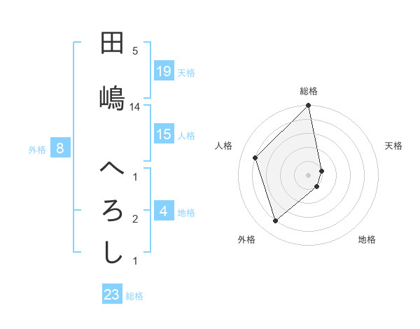 田嶋 へろしさんを姓名の画数から五運を鑑定