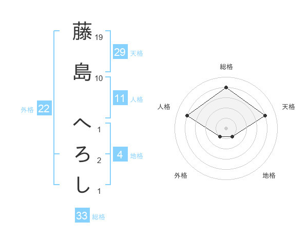 藤島 へろしさんを姓名の画数から五運を鑑定