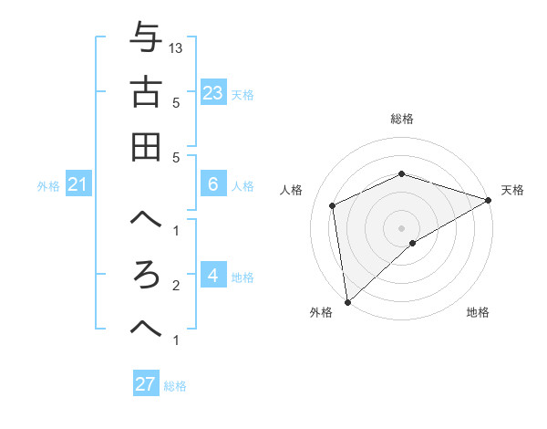与古田 へろへさんを姓名の画数から五運を鑑定