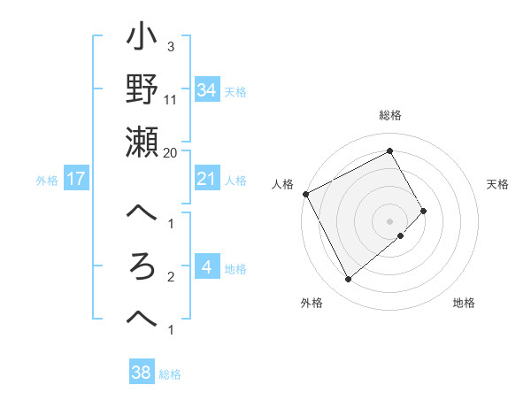 小野瀬 へろへさんを姓名の画数から五運を鑑定