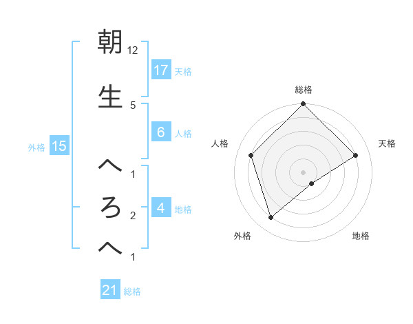 朝生 へろへさんを姓名の画数から五運を鑑定