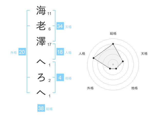 海老澤 へろへさんの総格は38画の4点!