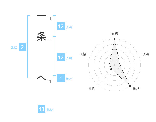 一条 へさんの総格は13画の5点!